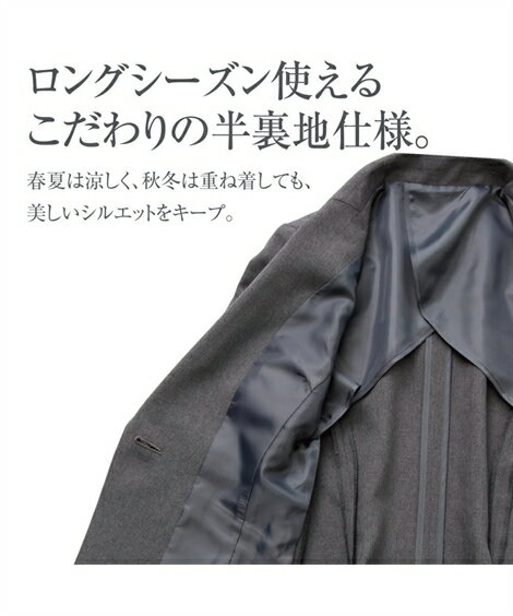 ・さらにお客様のご要望にもお応えして、スカート両脇にもポケットが付きました!・ジャケット裏は丁寧な背抜き仕様になっており、オールシーズン着用できます。